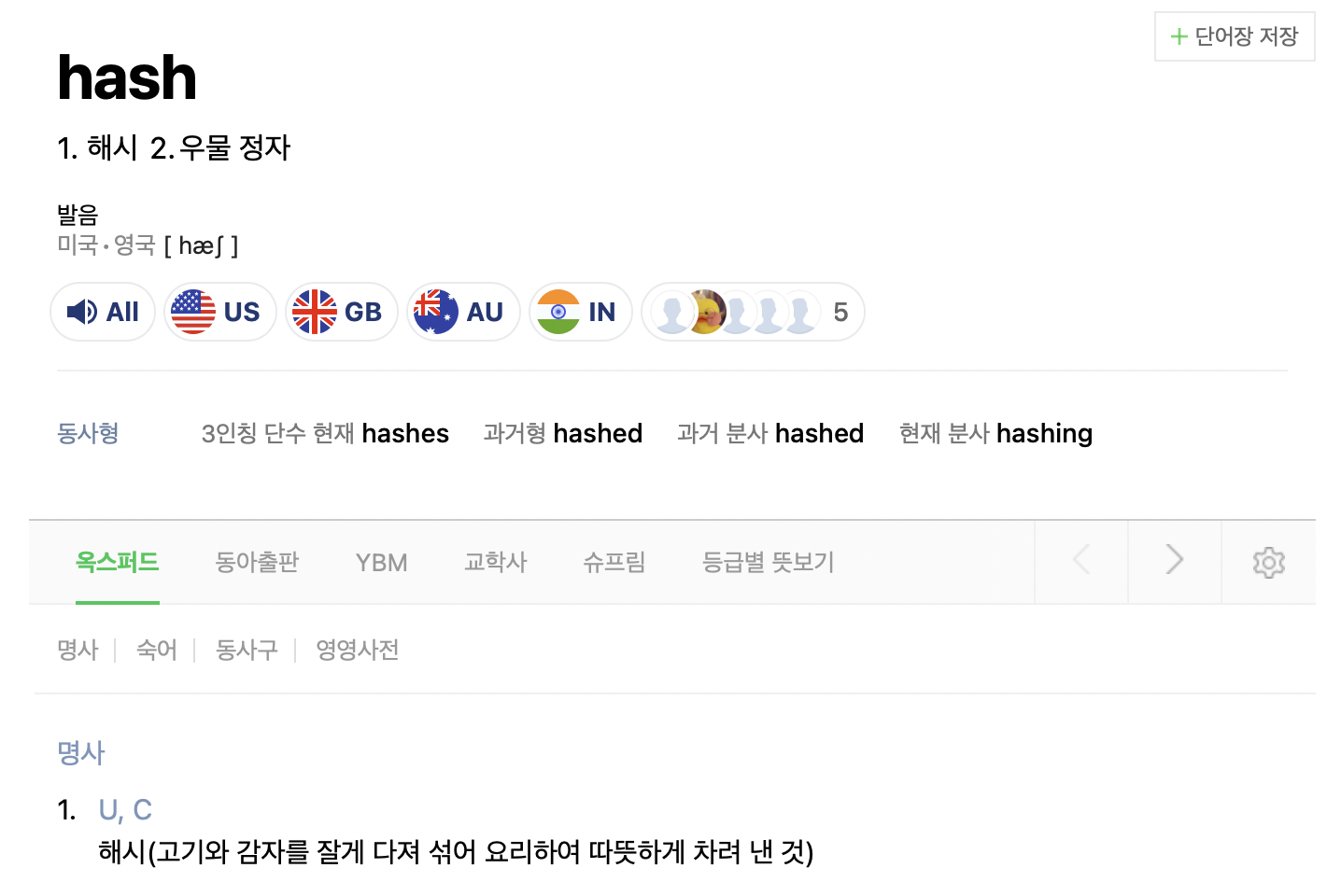 영어 사전에 hash를 검색하면 다음과 같은 뜻이 나온다.