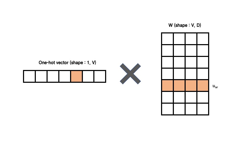 one-hot vector는 하나의 값만 1이고 나머지는 0이기에, 행렬곱을 진행하면 1을 가진 부분만 남고 나머지는 모두 없어진다.