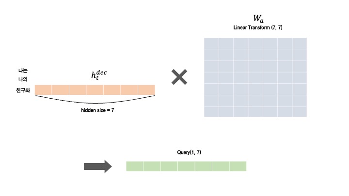 이를 $W_a$에 곱해주면서 linear transform을 실행한다. 결과적으로 shape (1, 7)의 Query가 생성되었다. (위에서의 과정 2)