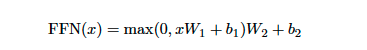 Position-wise Feed-Forward Networks는 간단하게 다음과 같이 이루어져 있다.