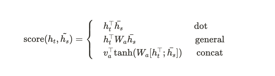 Dot-Product Attention은 위에서도 잠깐 언급된 논문인 Effective Approaches to Attention-based Neural Machine Translation이라는 논문에서 다음과 같이 소개되었다.