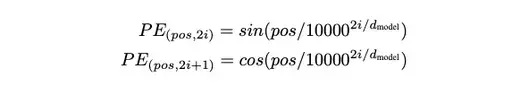 논문에서 사용하는 Positional Encoding은 다음과 같다. (Sinusoidal Positional Encoding)