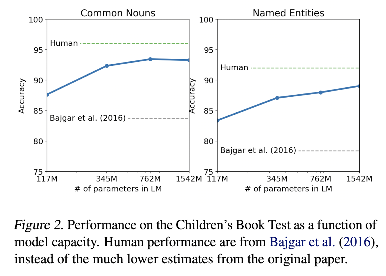 저자들은 이러한 결과는 GPT-2가 아직 WebText corpus에 underfitting되었음을 말해주는 결과라고 말한다.