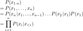 $x_{1:n} = \{x_1,...,x_n\}$은 문장 $x$는 n개의 단어로 구성된다는 의미이다.