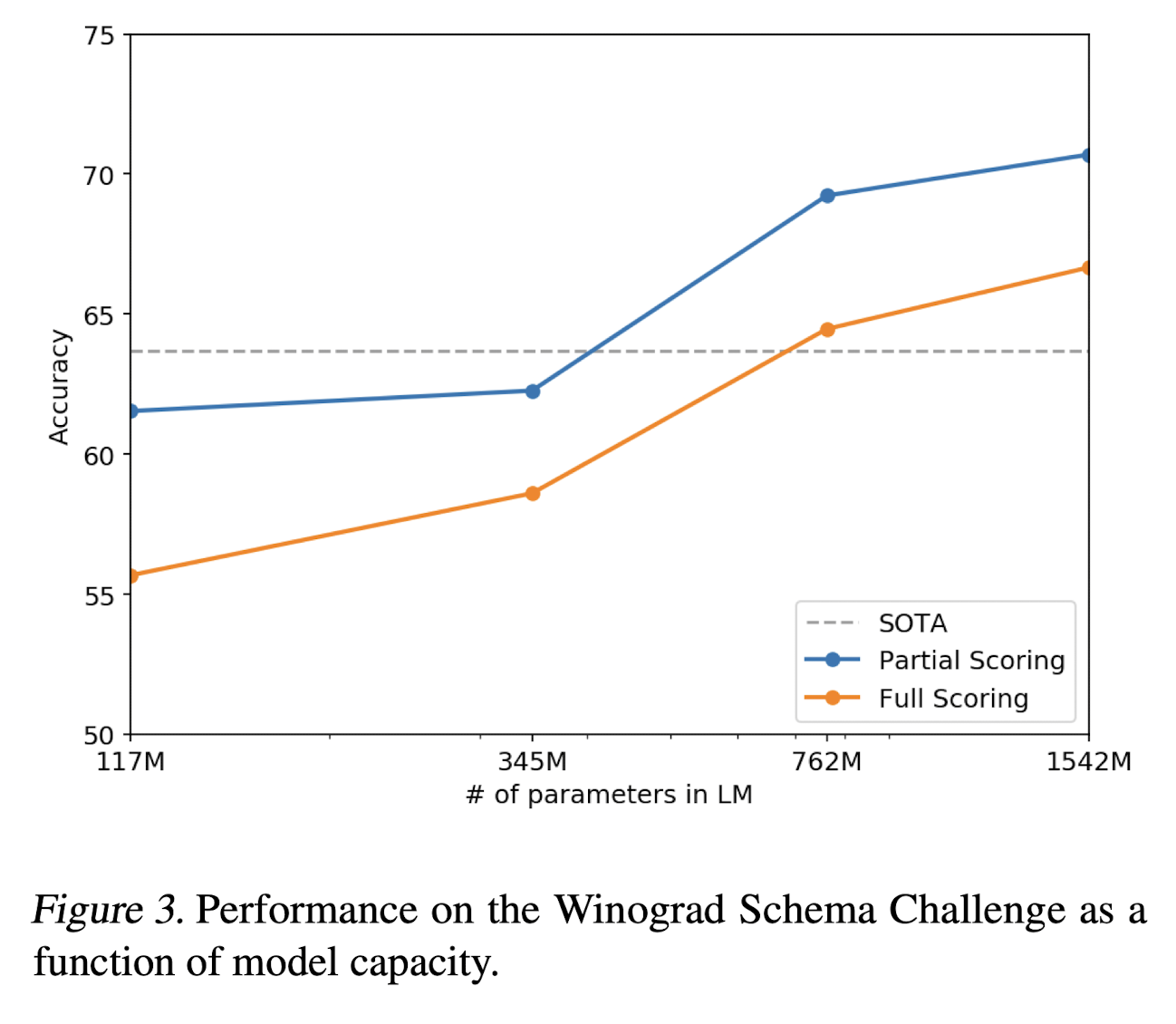 Winograd Schema는 해당 model이 text 속에서 모호함을 얼마나 잘 해결할 수 있는지 측정하는 commonsense reasoning 수행 능력을 측정한다.