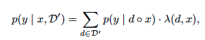즉, 각 document별 산출된 output probailities에 대해 해당 document가 input과 얼마나 유사한지에 기반한 가중치를 곱한 뒤, document에 대해 marginalize를 함으로써 최종적인 output probaility를 구하게 되는 것이다