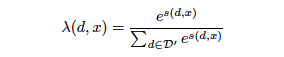 간단하게, 각 document $d$에 대해 input context $x$와의 유사도를 기반으로 하여 softmax를 취함으로써 구할 수 있다.