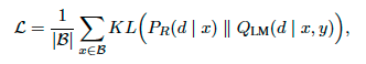 즉, retriever model에서 d,x 가 고정되었을 때, 해당 값들이 어떤 확률 분포에서 왔을지에 대한 "가능성"인 likelihood는 LM에서 x 와 y, d 가 고정되었을 때, 해당 값들이 어떤 확률 분포에서 왔을지에 대한 likelihood와 비슷해지는 것을 목적으로 training된다.