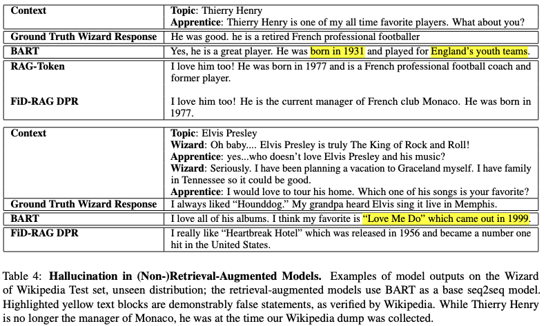 BART의 결과에서는, 앙리가 1931년생 잉글랜드 축구선수라는, 사실과 다른 output을 산출한 것과 달리, retrieval-augmented language model은 실제 정보를 아주 잘 산출해 낸 것을 확인할 수 있다.