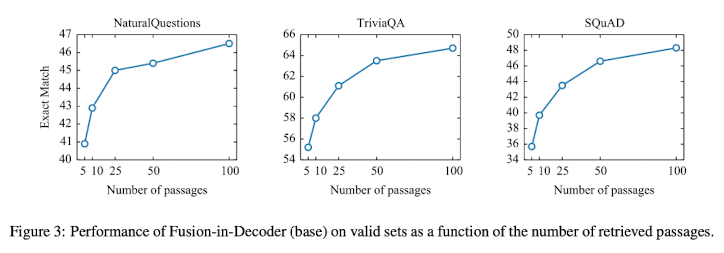 retrieve되는 document의 수가 많아질수록, 성능이 점점 증가하는 것을 확인할 수 있다.