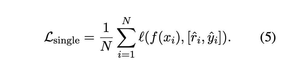 본 연구에서는 rationale을 additional model input으로 사용하는 방법 대신, rationale을 predict하는 task를 추가하여, 결과적으로 multi-task problem으로 학습하는 방법을 채택하였다. 즉, input $x_i$를 사용하여 label뿐만 아니라 rationale도 predict하게끔 하는 것이다. 이는 아래와 같이 표현된다